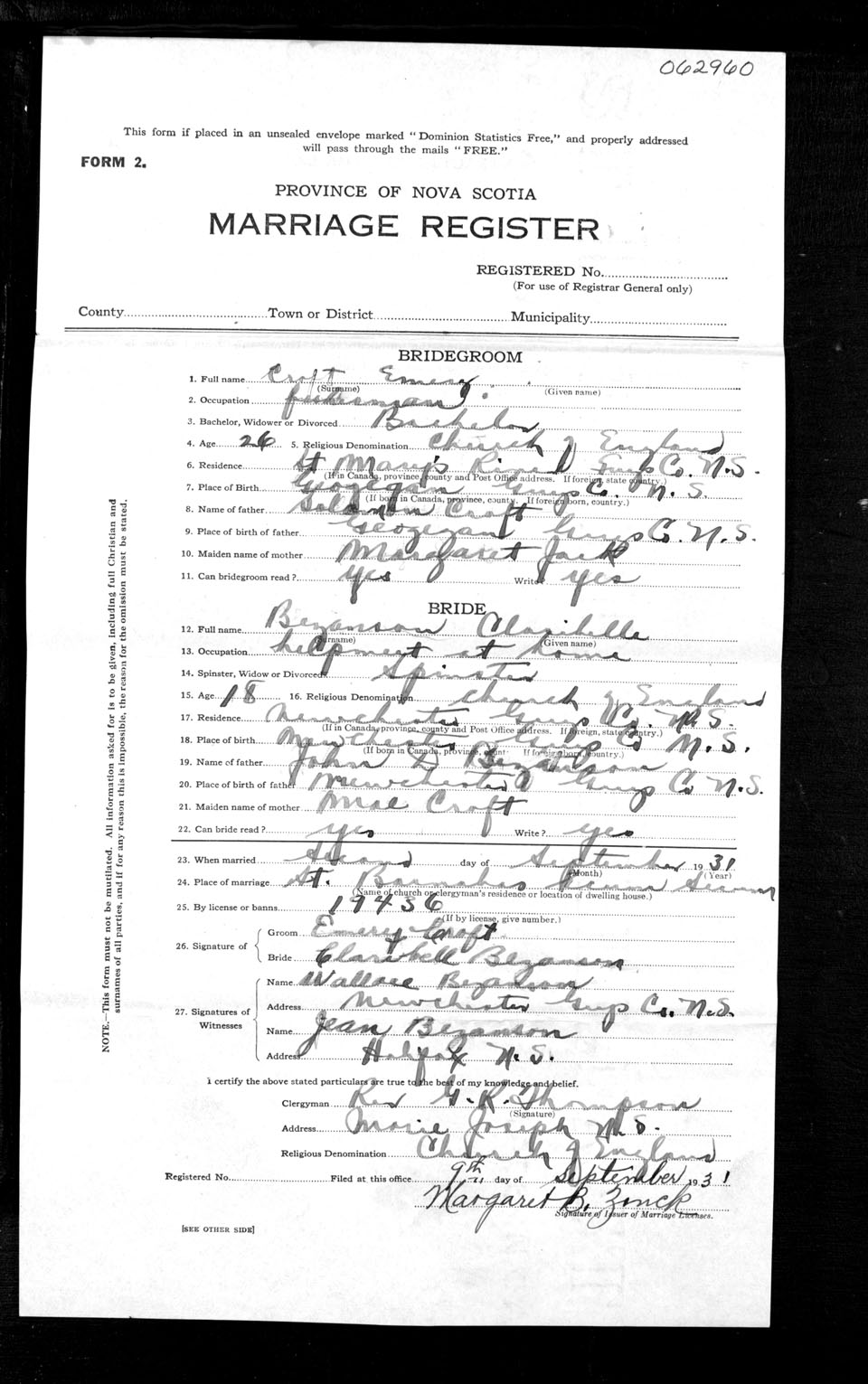 Registration: Year: 1931 number: 62960