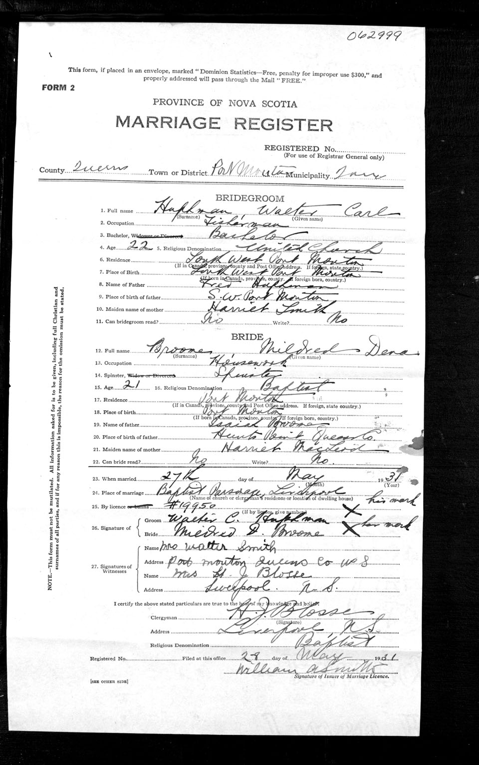 Registration: Year: 1931 number: 62999