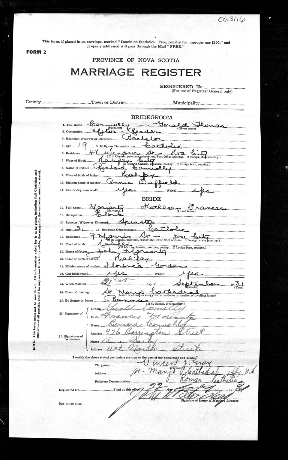 Registration: Year: 1931 number: 63116