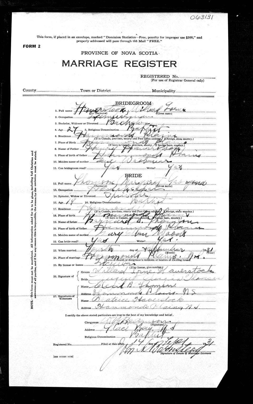 Registration: Year: 1931 number: 63131