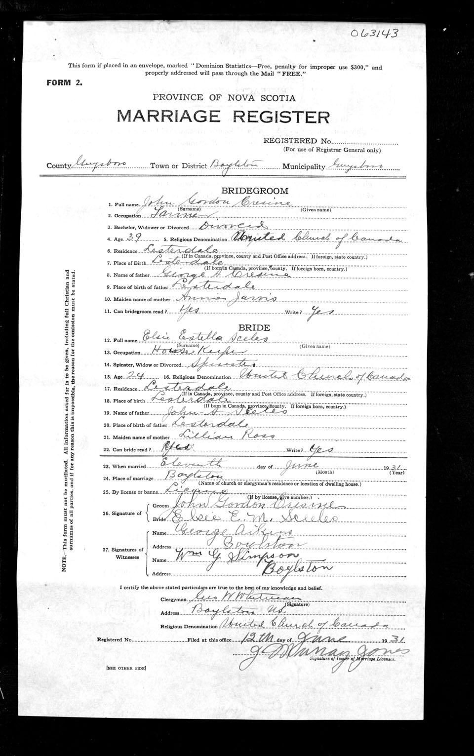 Registration: Year: 1931 number: 63143