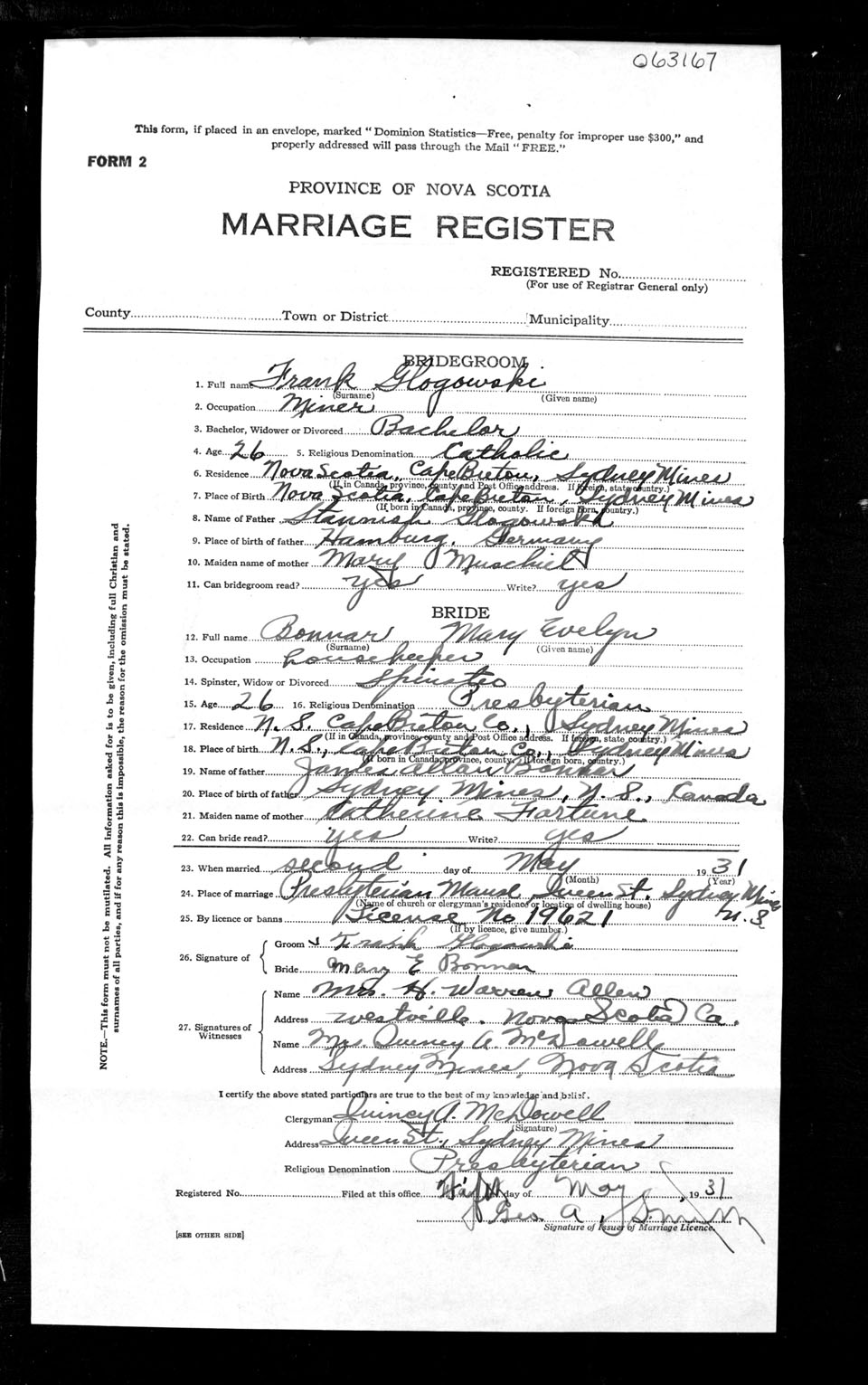 Registration: Year: 1931 number: 63167