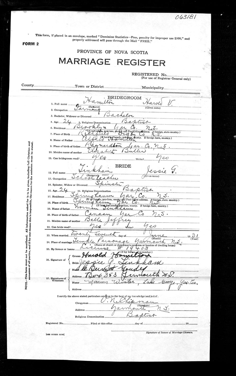 Registration: Year: 1931 number: 63181