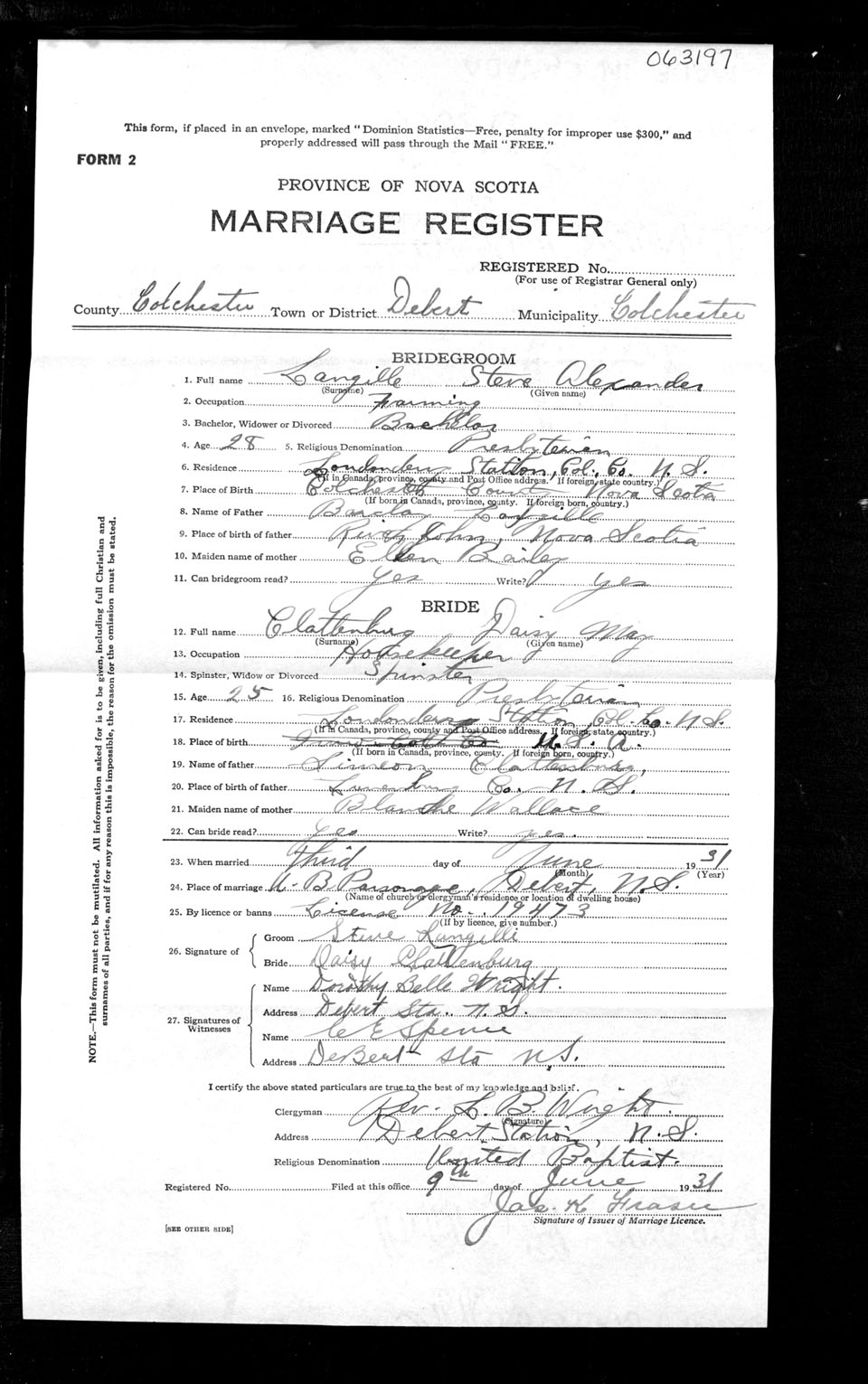 Registration: Year: 1931 number: 63197