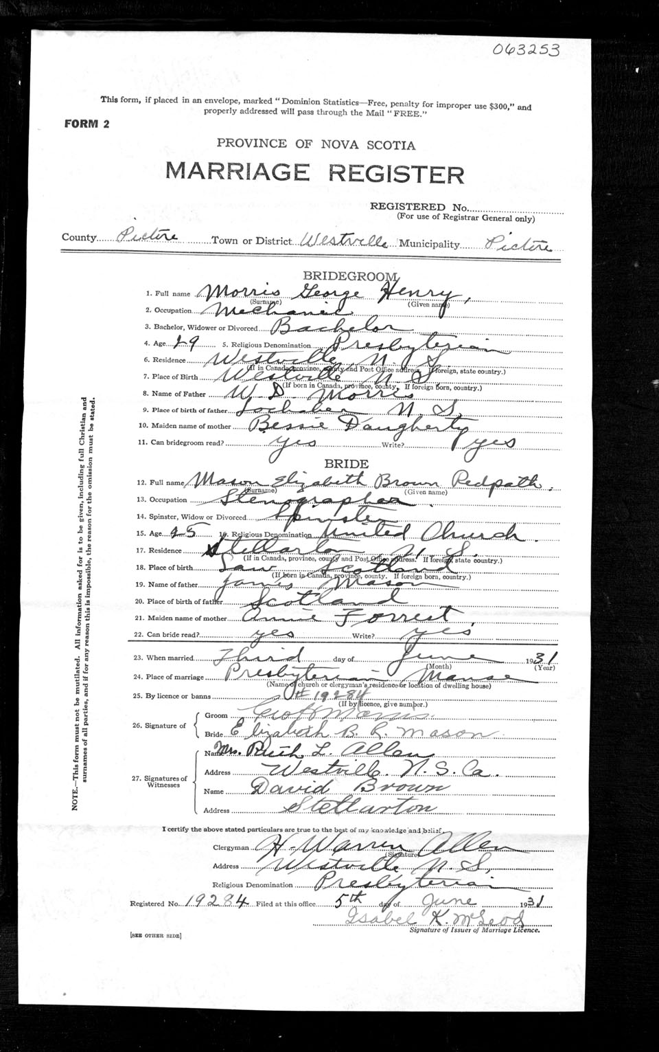 Registration: Year: 1931 number: 63253