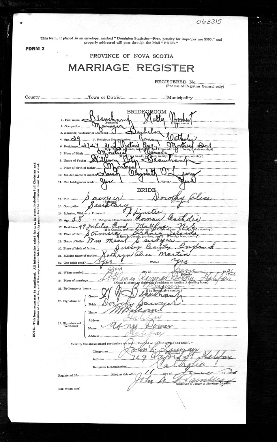 Registration: Year: 1931 number: 63315