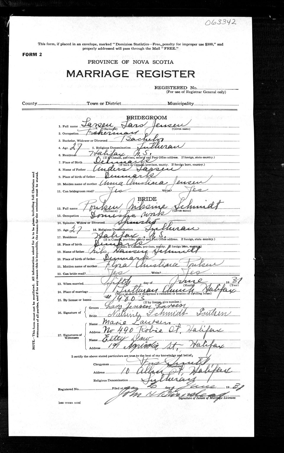Registration: Year: 1931 number: 63342