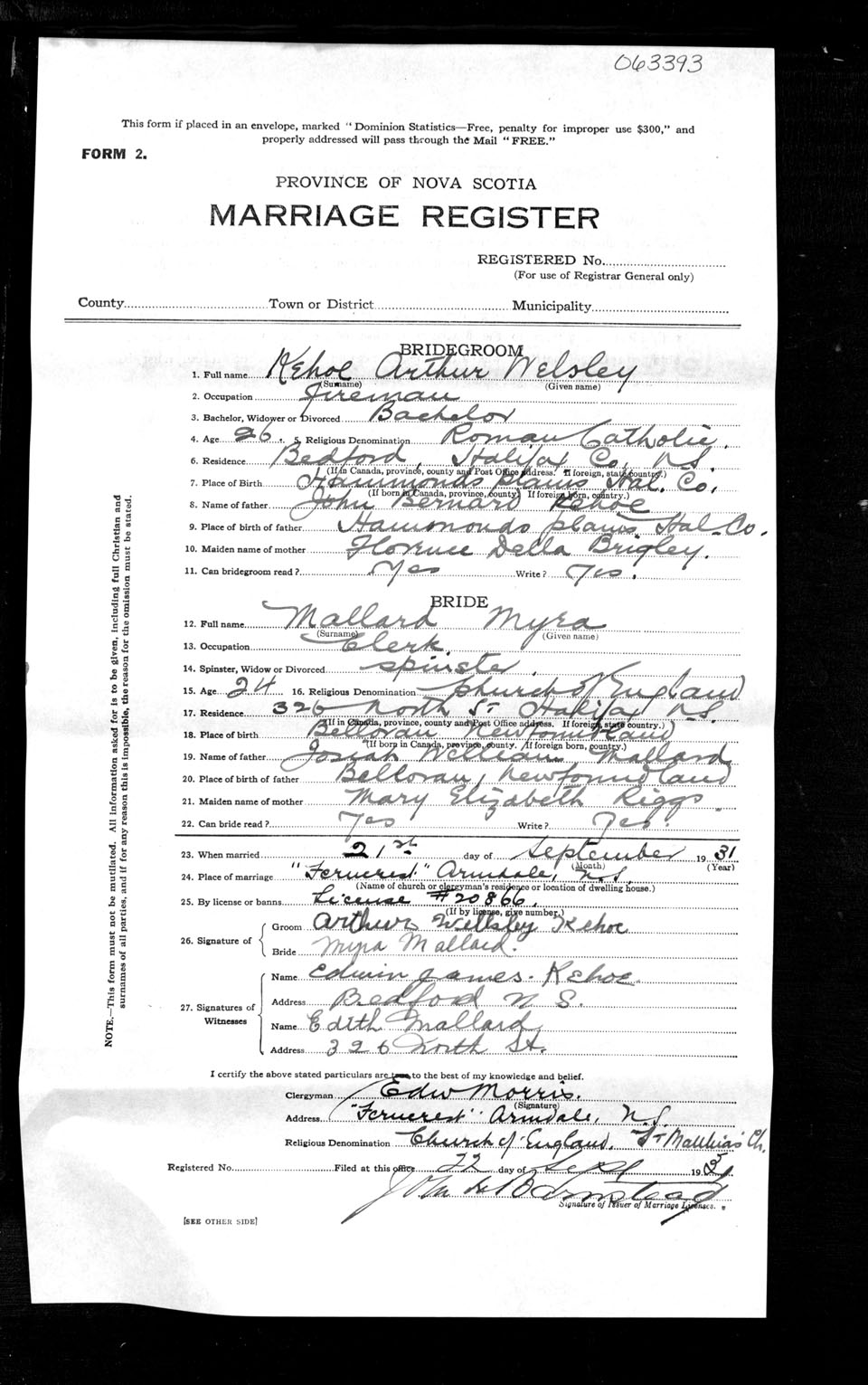 Registration: Year: 1931 number: 63393