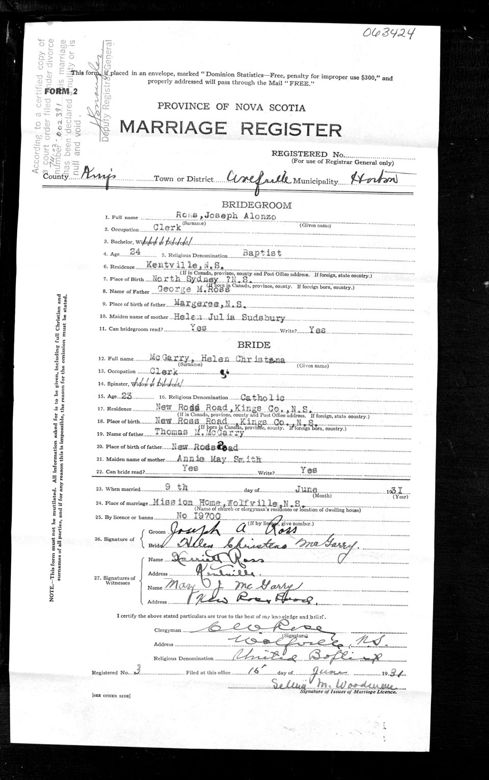Registration: Year: 1931 number: 63424