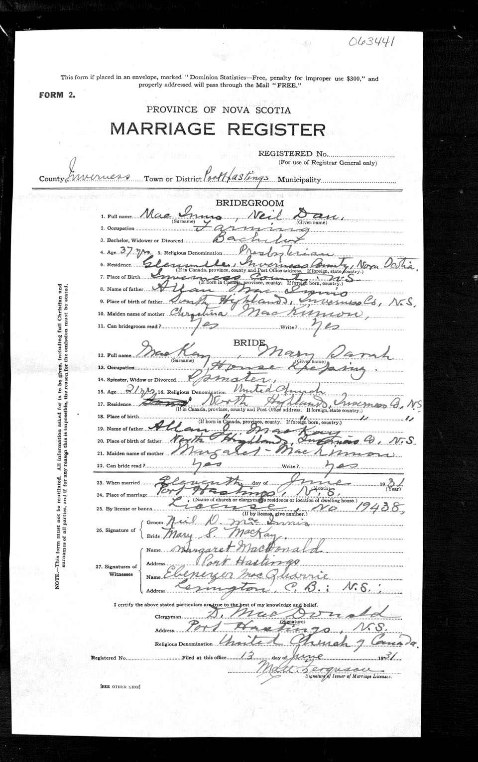 Registration: Year: 1931 number: 63441