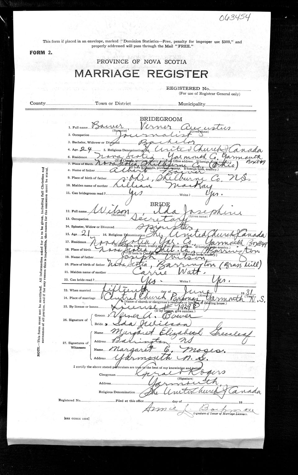 Registration: Year: 1931 number: 63454