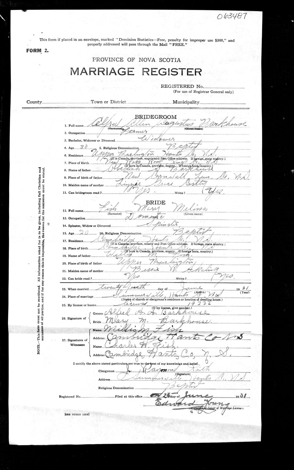 Registration: Year: 1931 number: 63487
