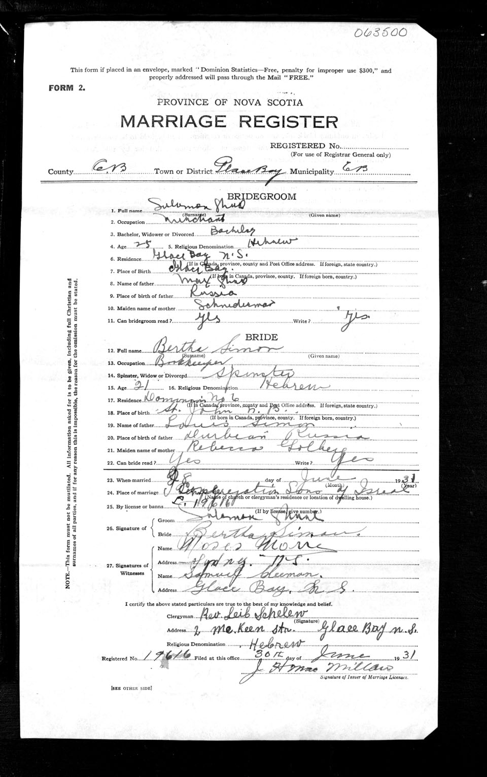Registration: Year: 1931 number: 63500