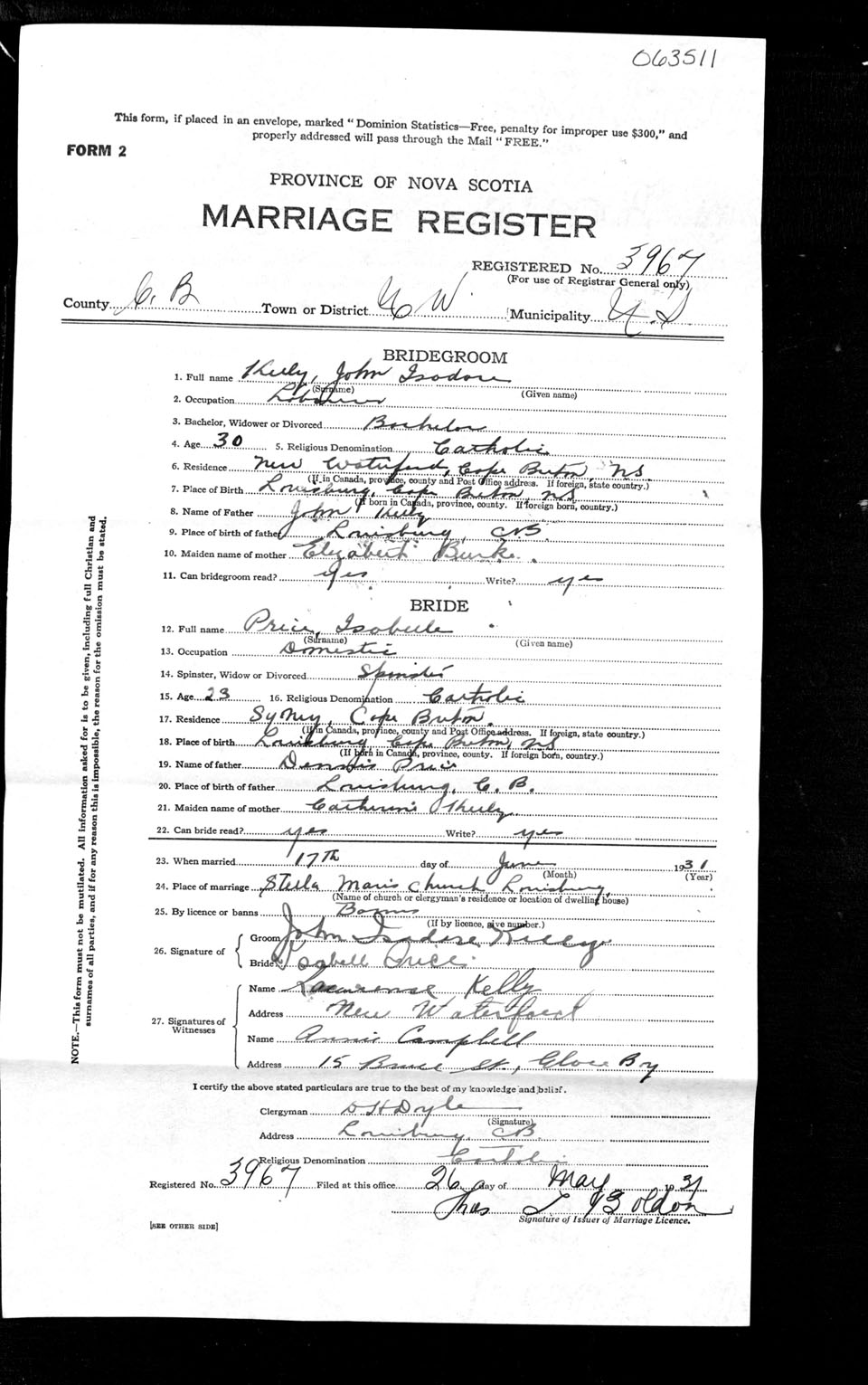 Registration: Year: 1931 number: 63511
