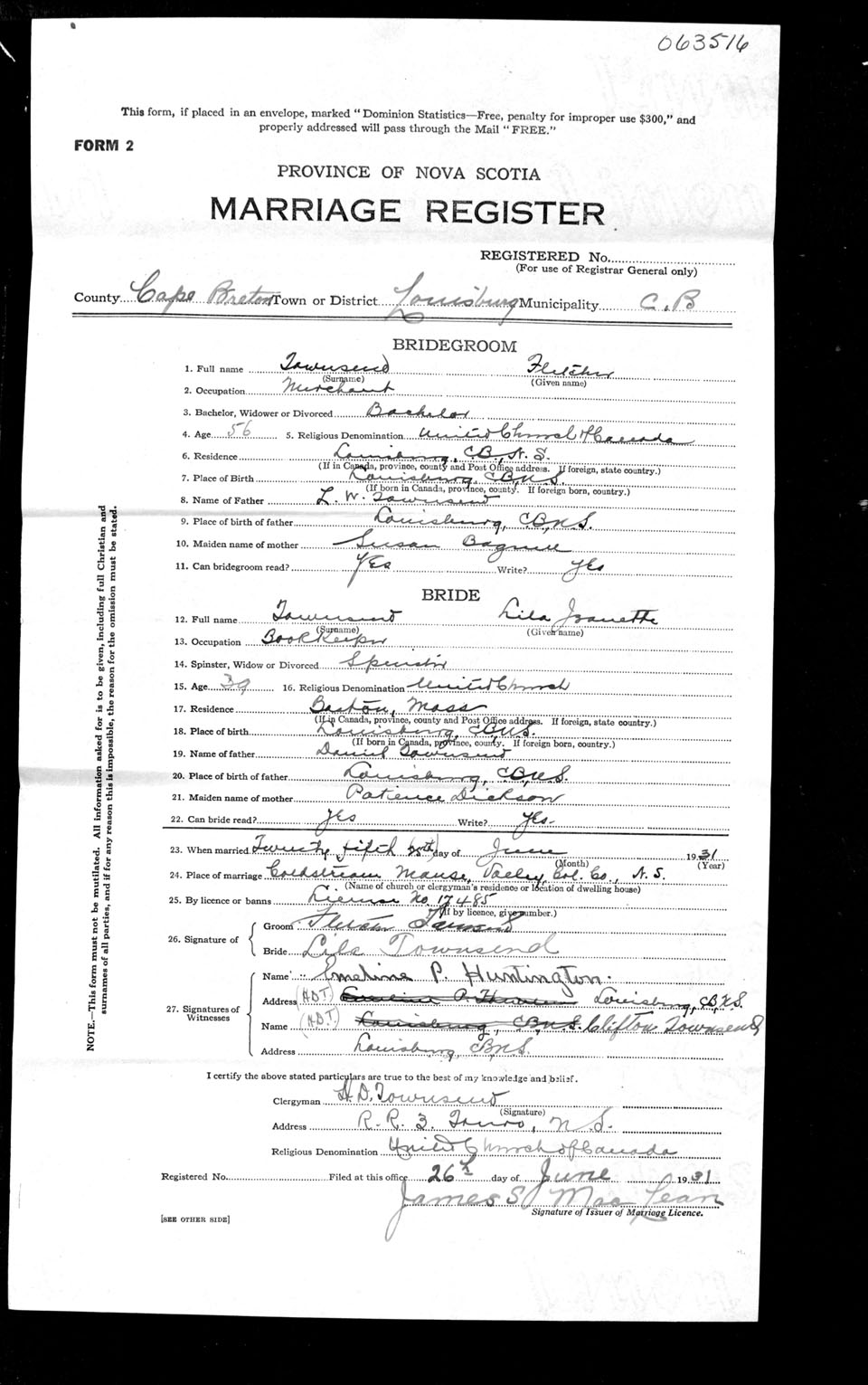 Registration: Year: 1931 number: 63516