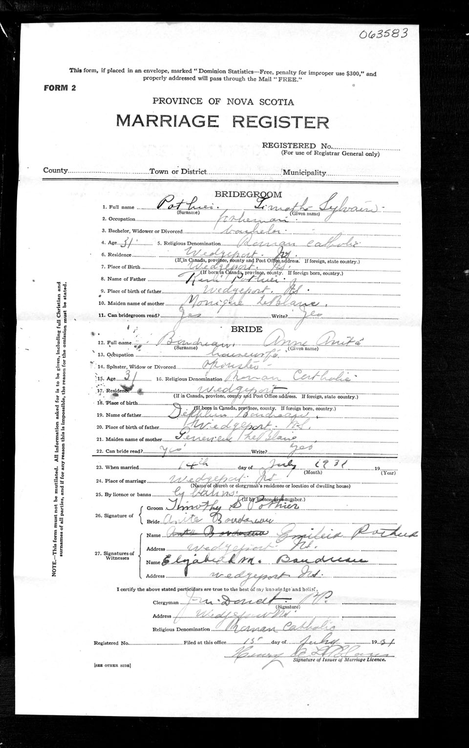 Registration: Year: 1931 number: 63583