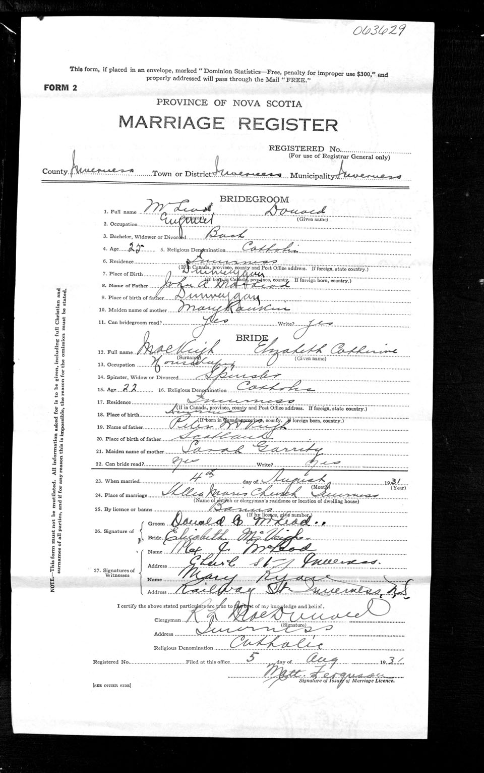 Registration: Year: 1931 number: 63629