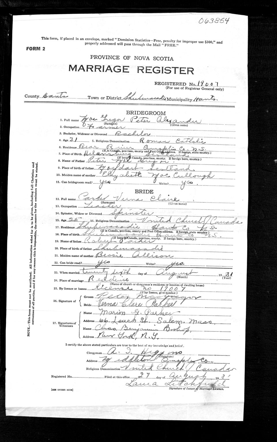 Registration: Year: 1931 number: 63854