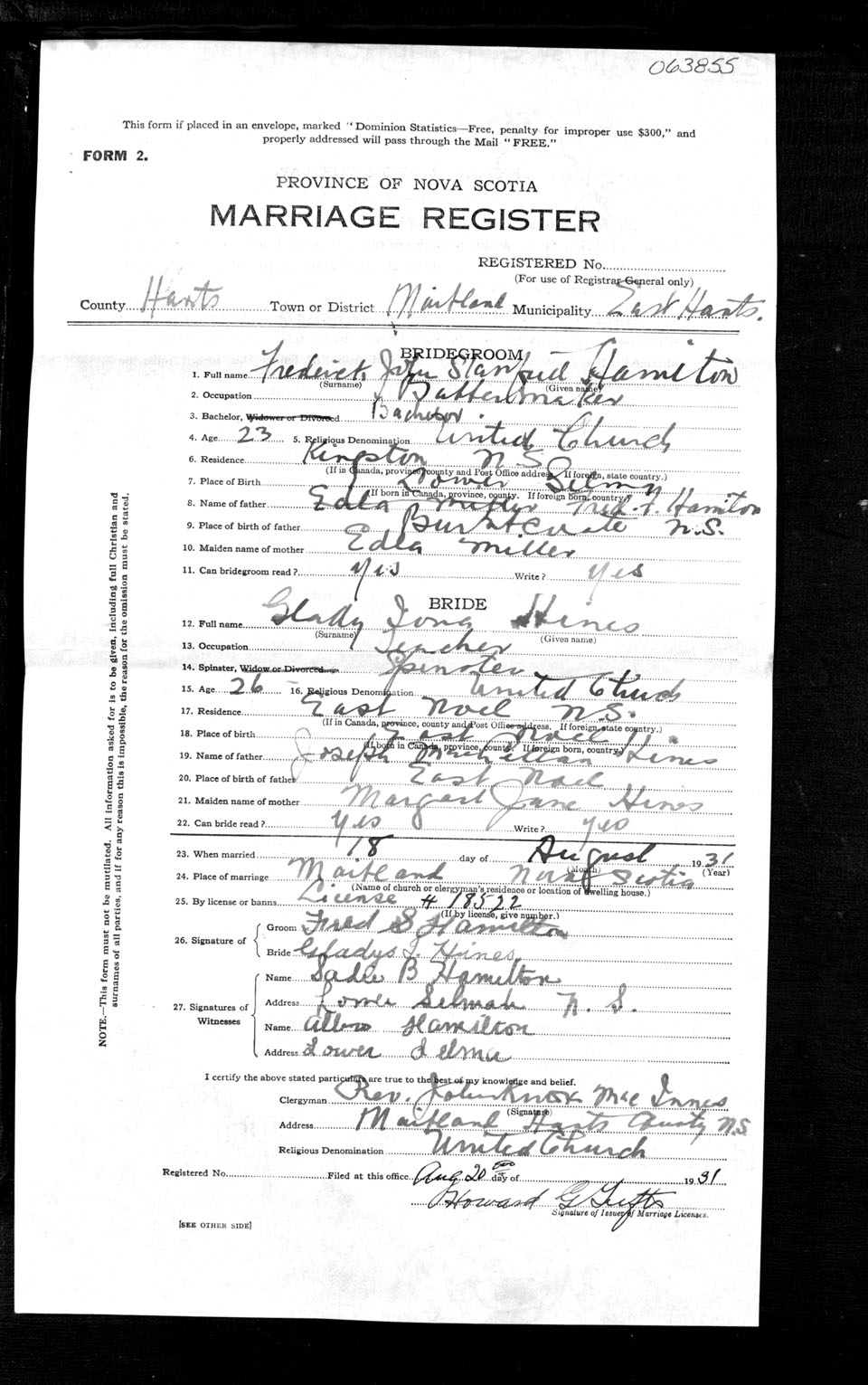 Registration: Year: 1931 number: 63855