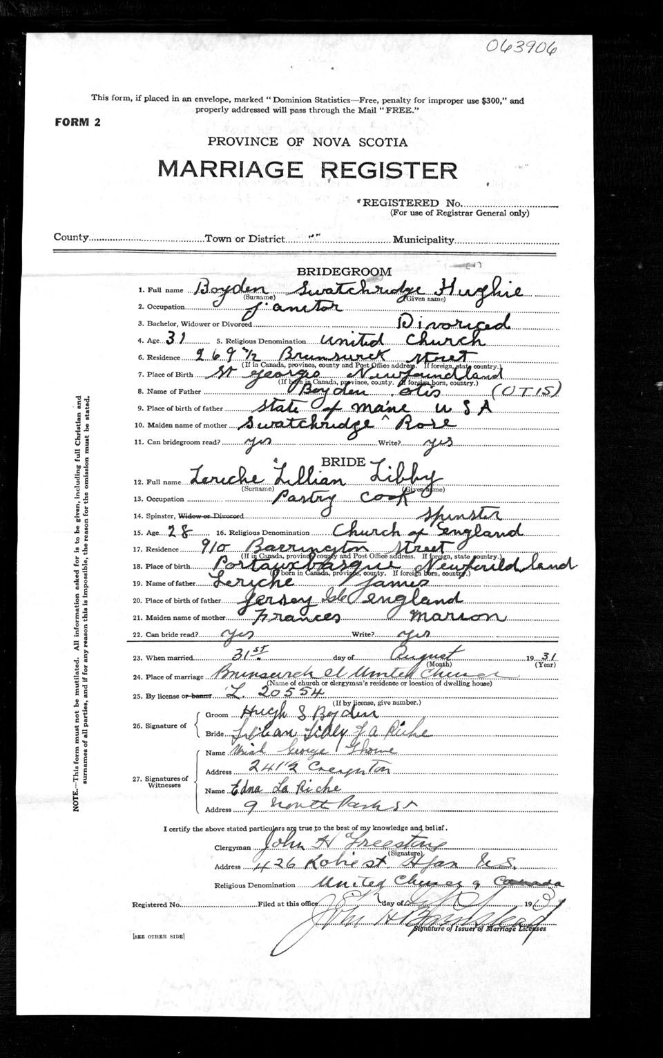 Registration: Year: 1931 number: 63906