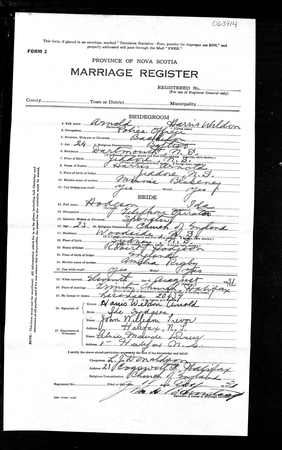 Registration: Year: 1931 number: 63914