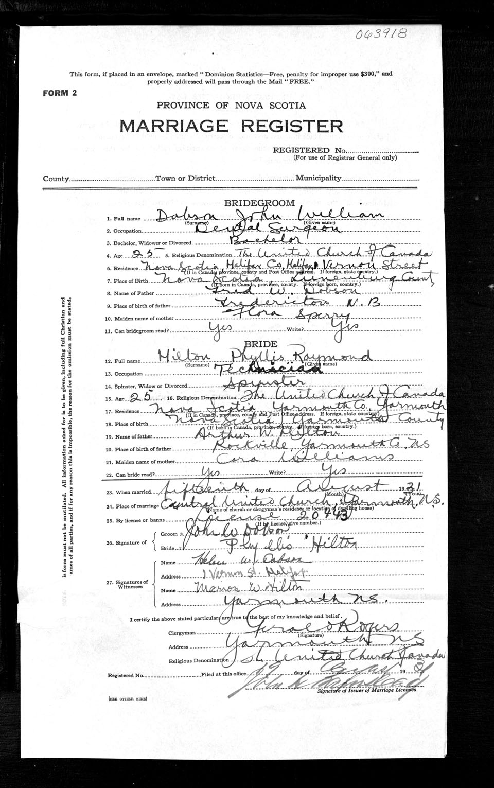 Registration: Year: 1931 number: 63918