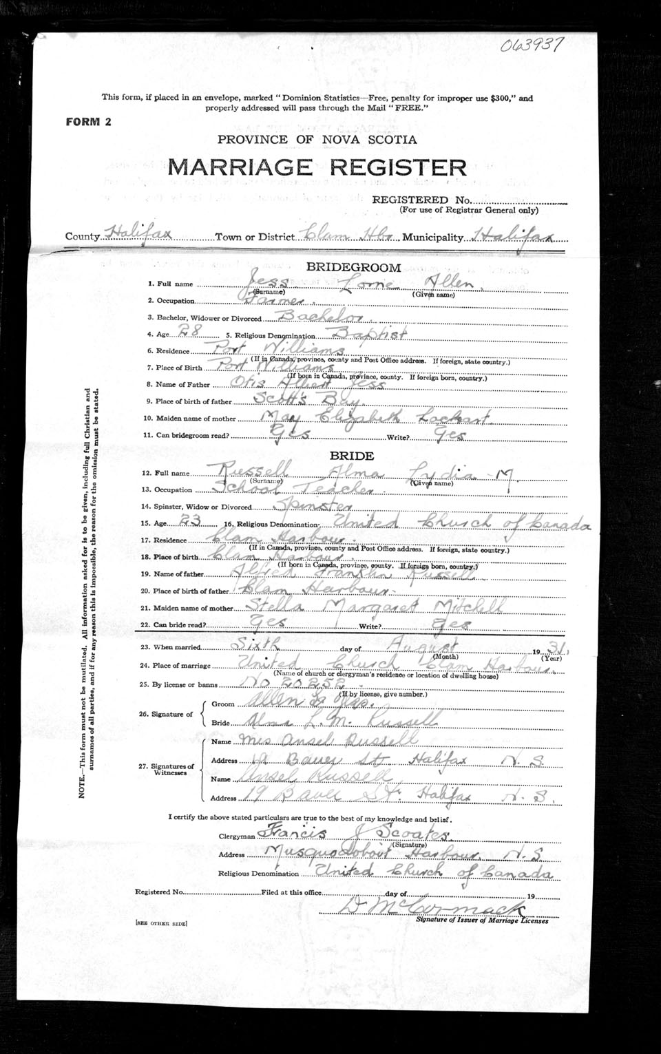 Registration: Year: 1931 number: 63937