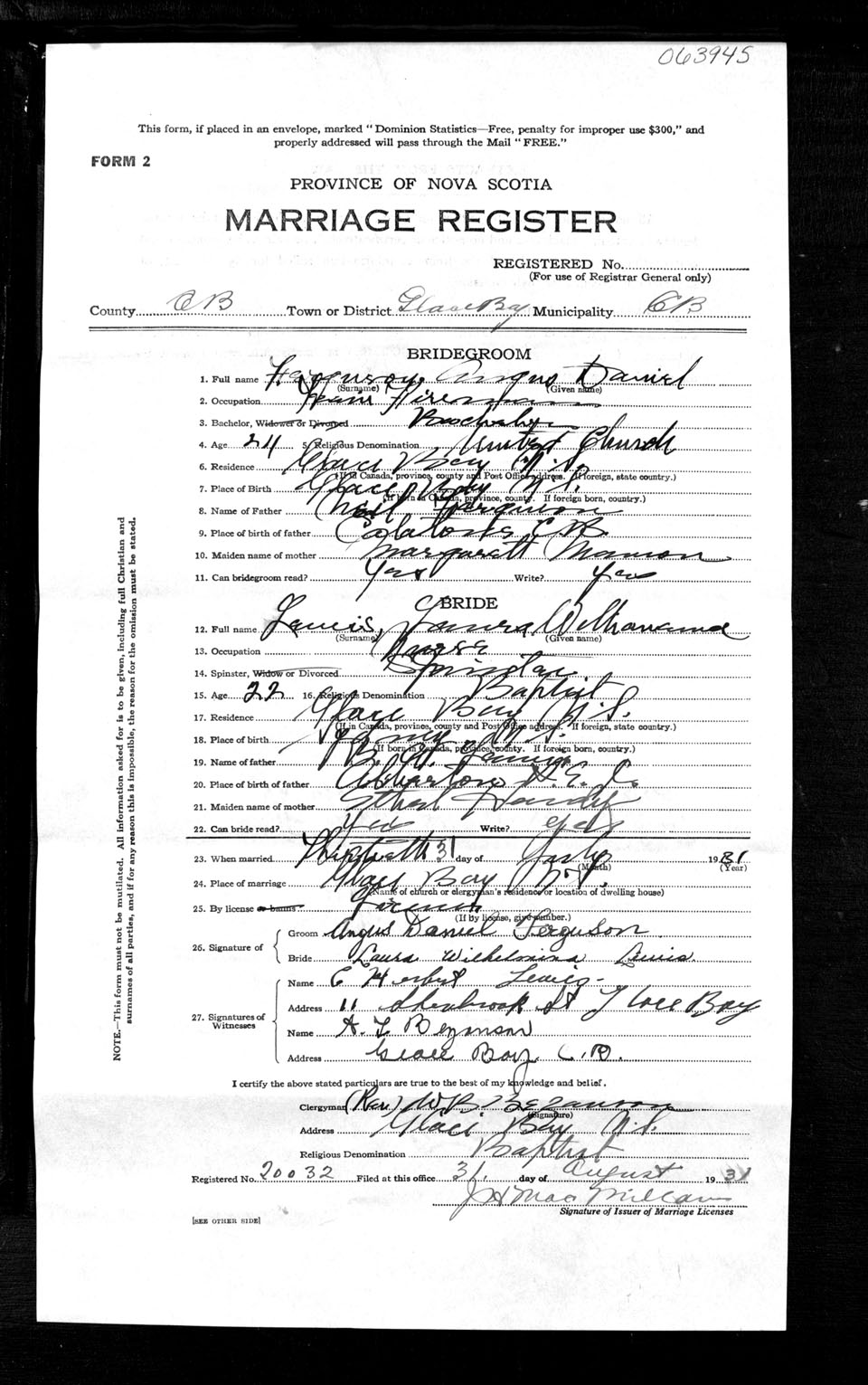 Registration: Year: 1931 number: 63945
