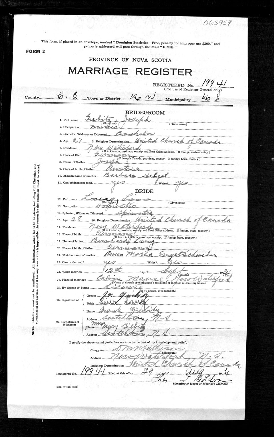 Registration: Year: 1931 number: 63959