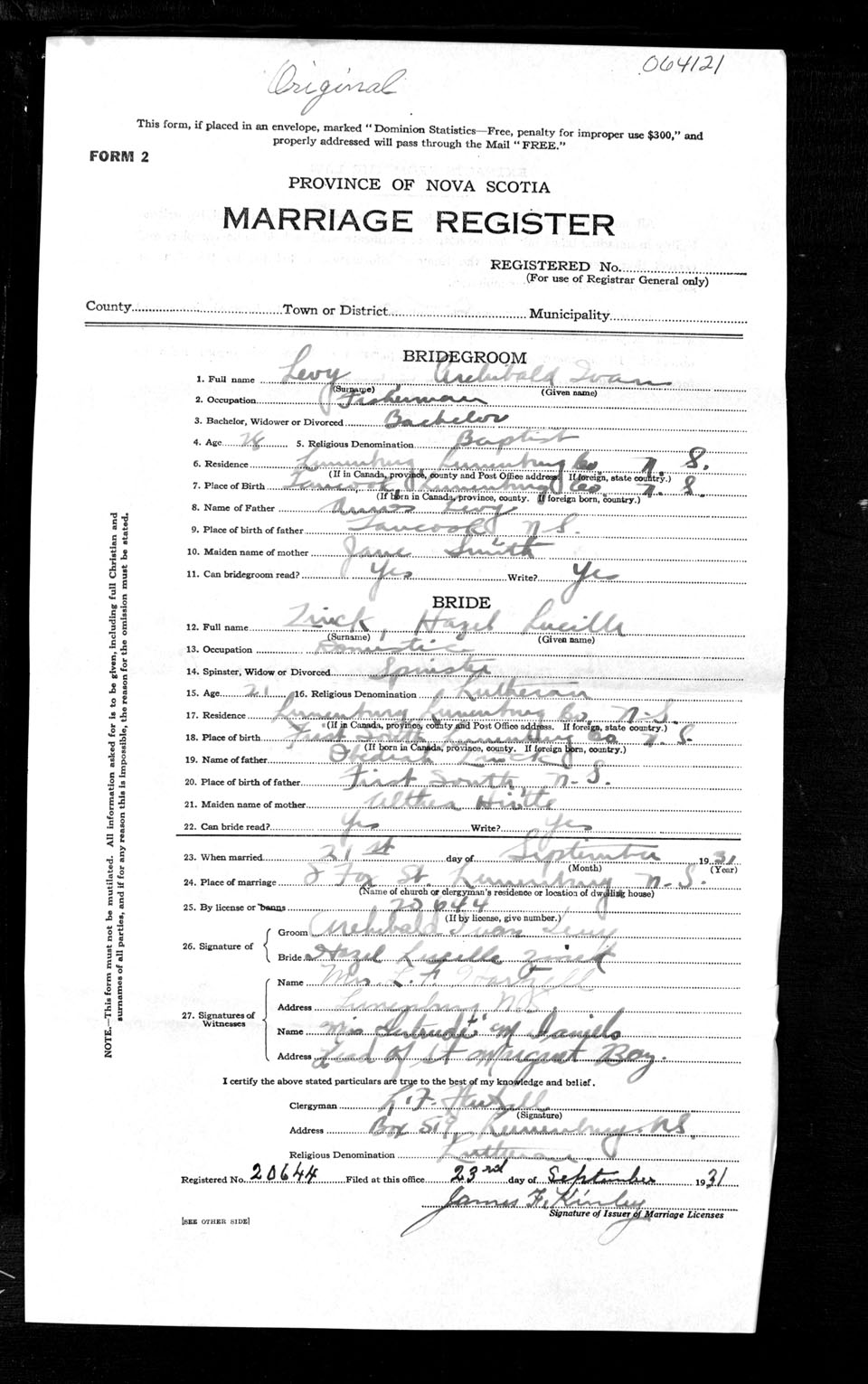 Registration: Year: 1931 number: 64121