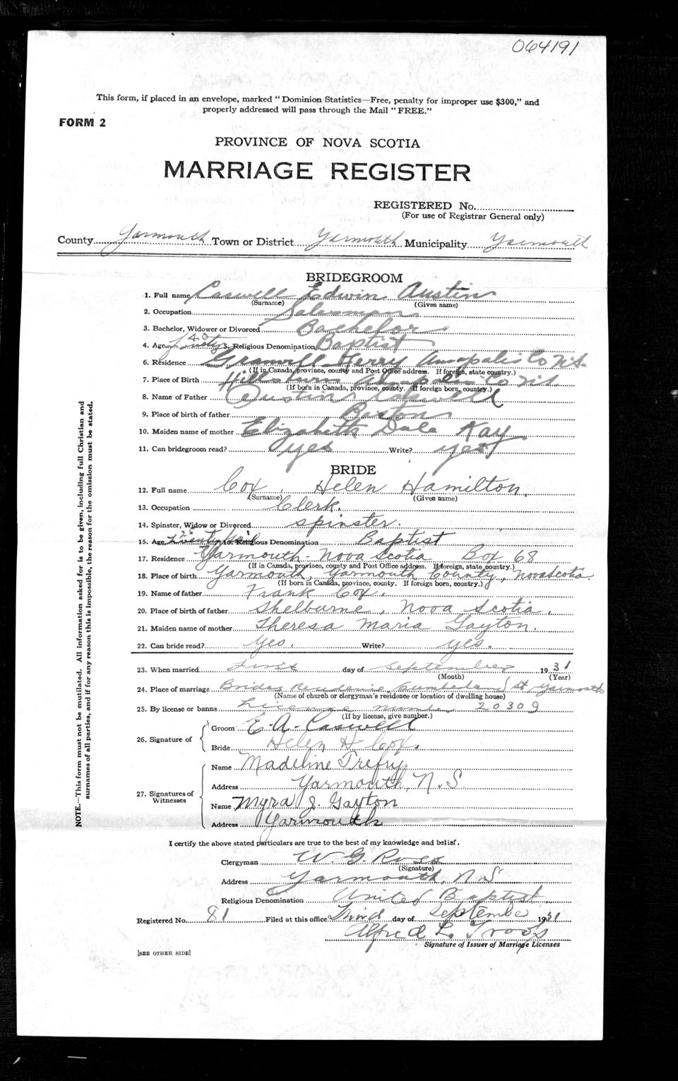 Registration: Year: 1931 number: 64191