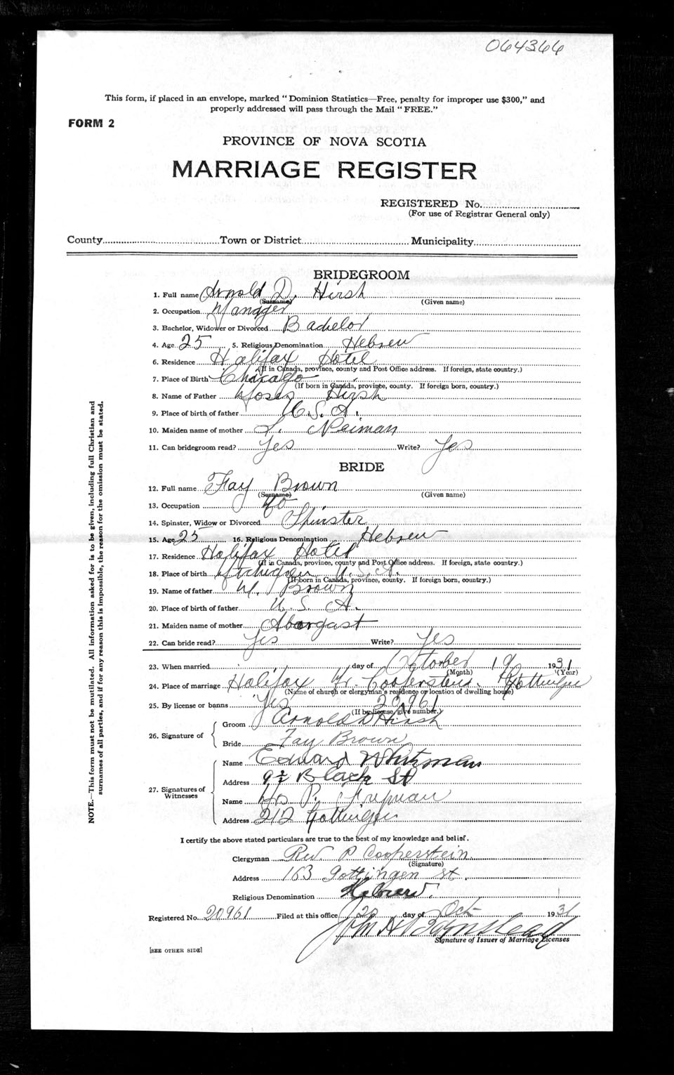 Registration: Year: 1931 number: 64366