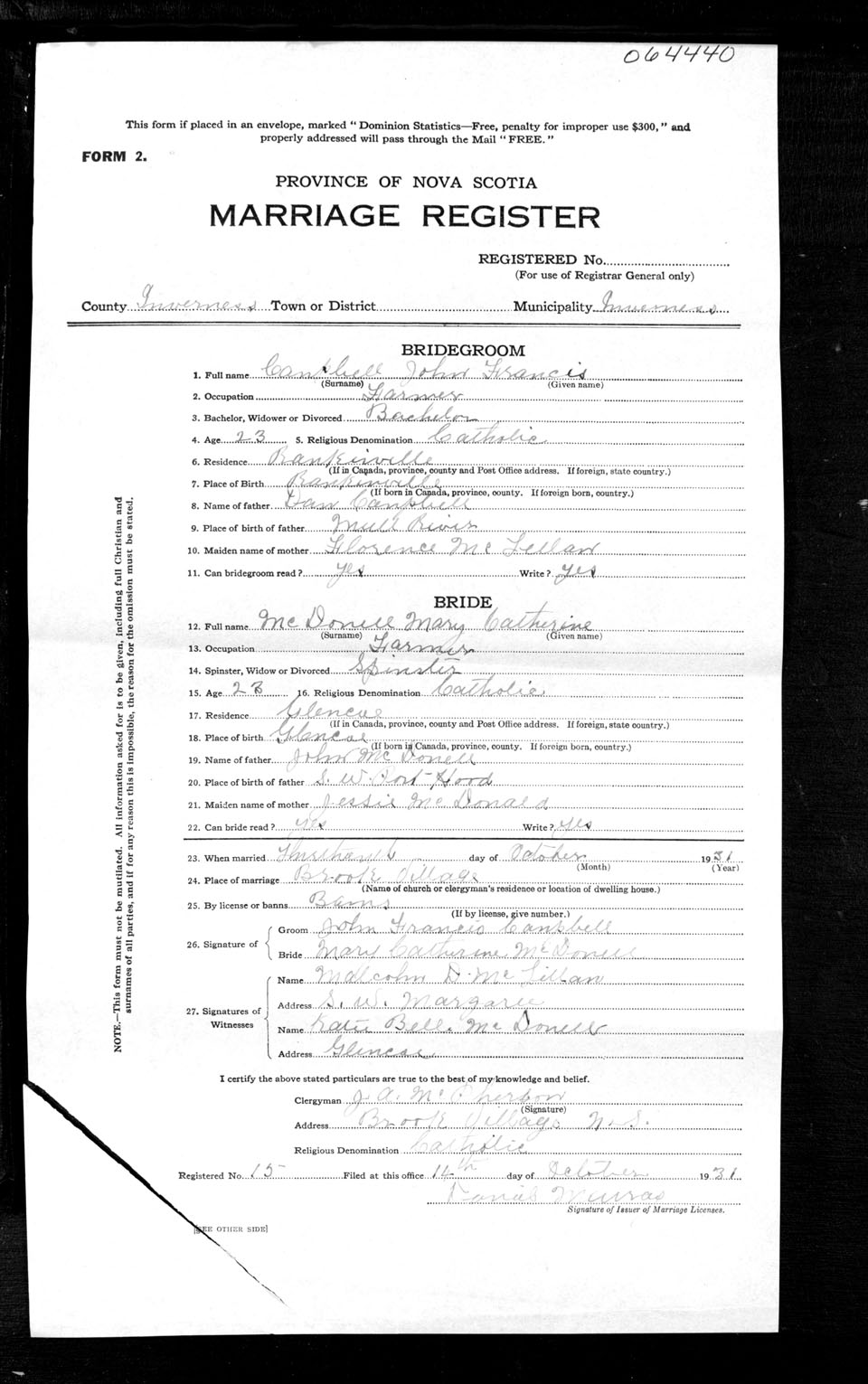 Registration: Year: 1931 number: 64440