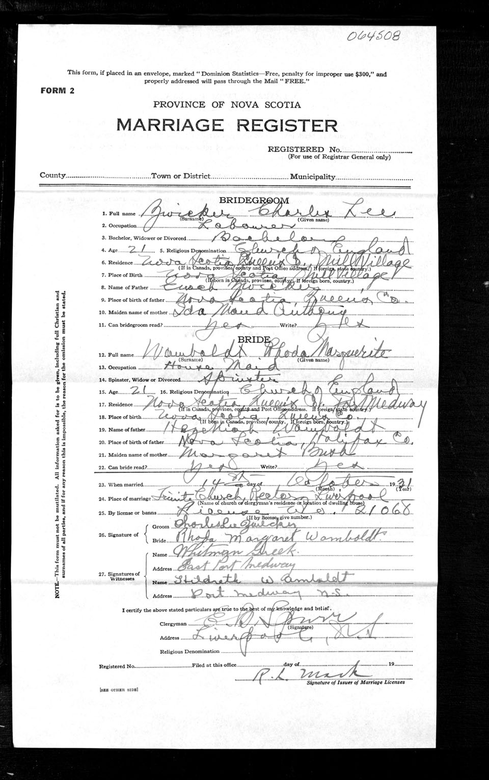 Registration: Year: 1931 number: 64508