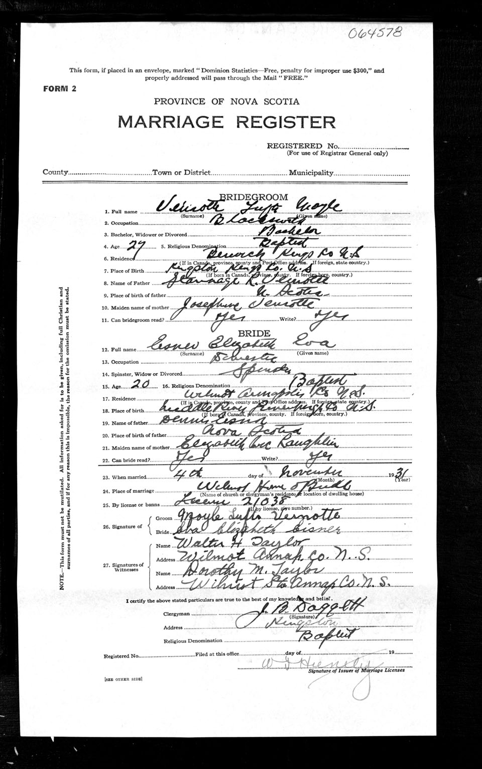 Registration: Year: 1931 number: 64578