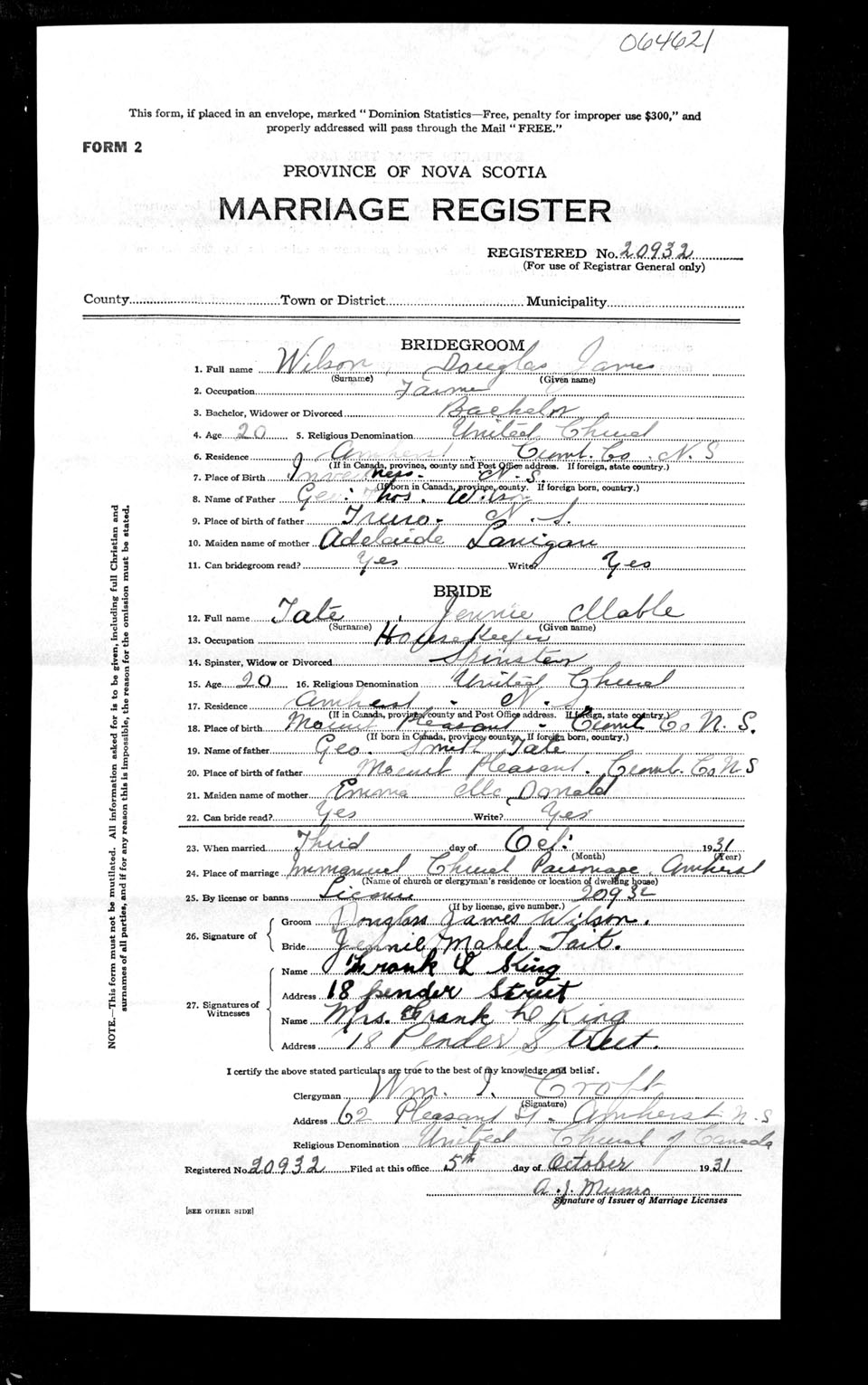 Registration: Year: 1931 number: 64621