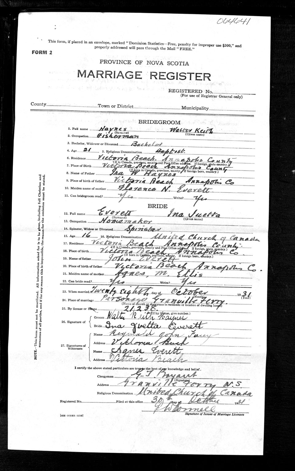 Registration: Year: 1931 number: 64641