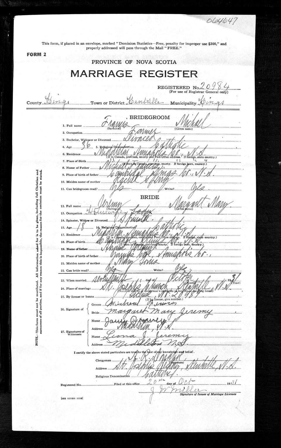 Registration: Year: 1931 number: 64647