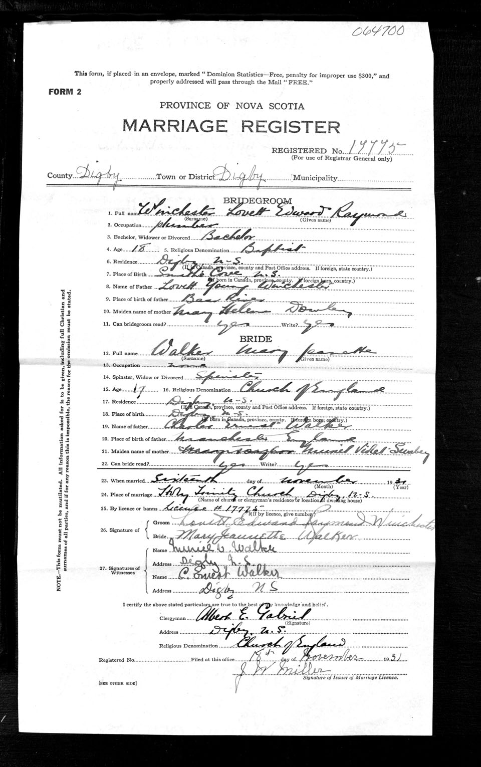 Registration: Year: 1931 number: 64700