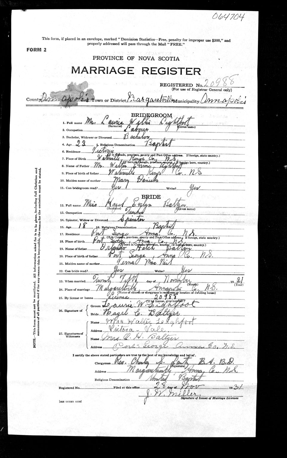 Registration: Year: 1931 number: 64704