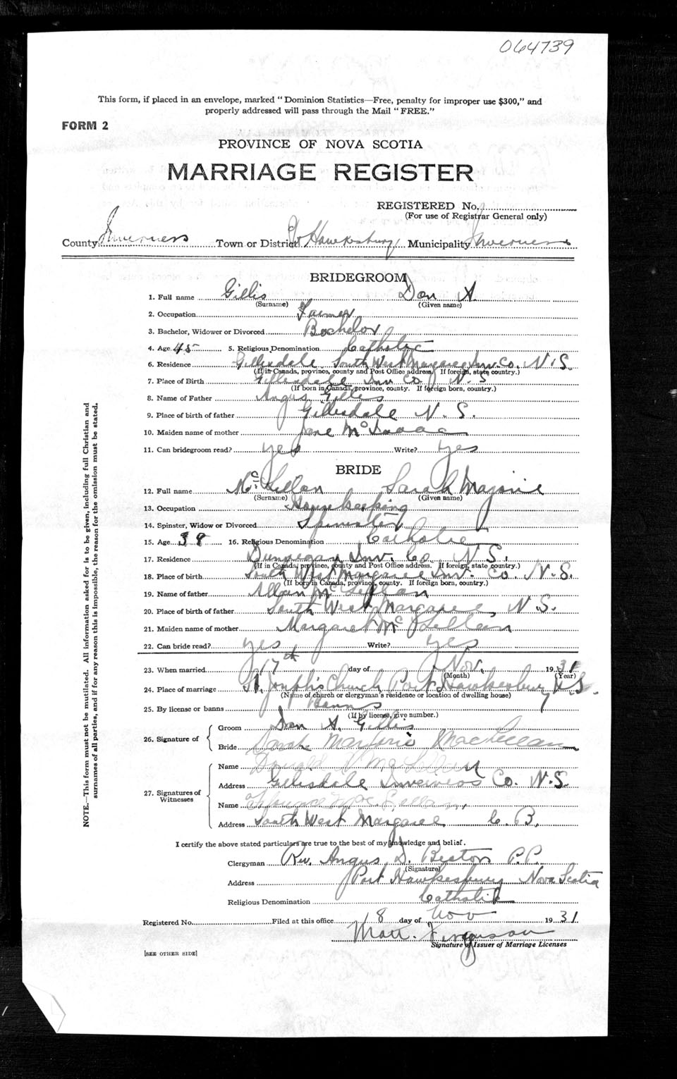 Registration: Year: 1931 number: 64739