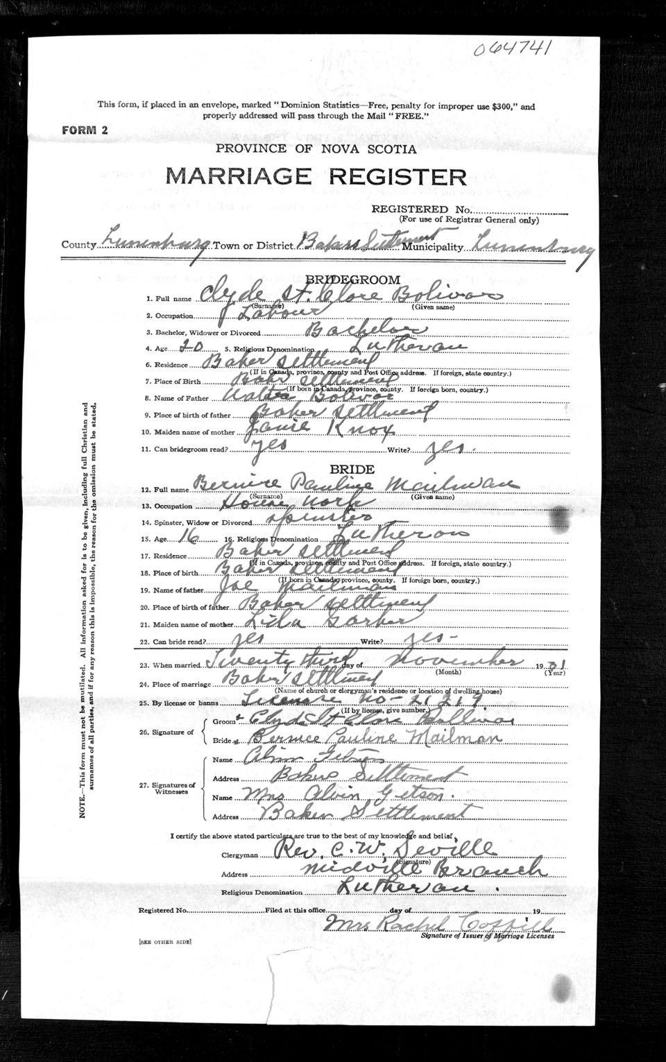 Registration: Year: 1931 number: 64741