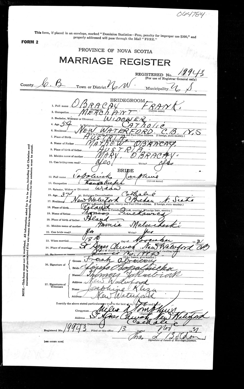 Registration: Year: 1931 number: 64784