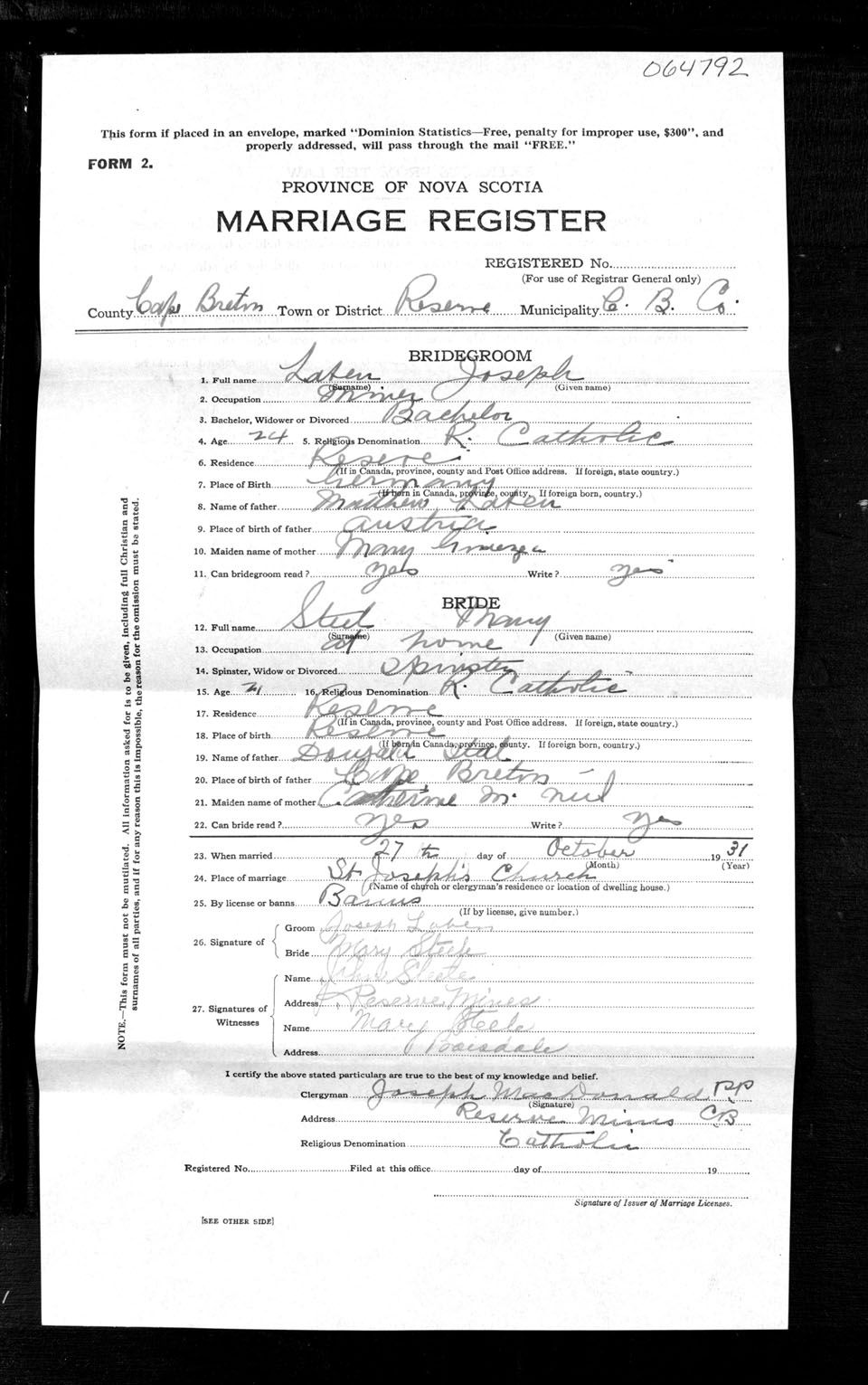 Registration: Year: 1931 number: 64792