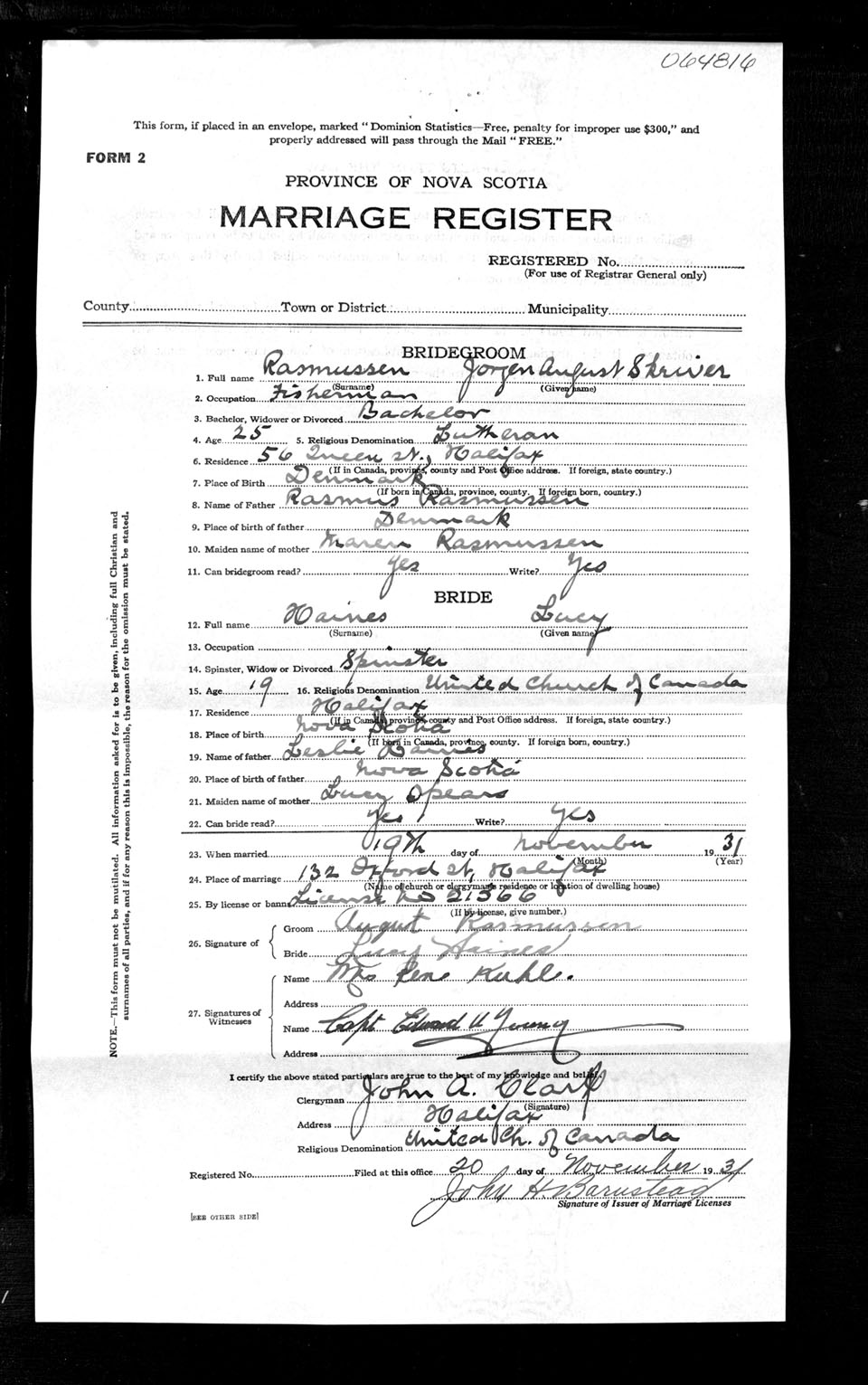 Registration: Year: 1931 number: 64816