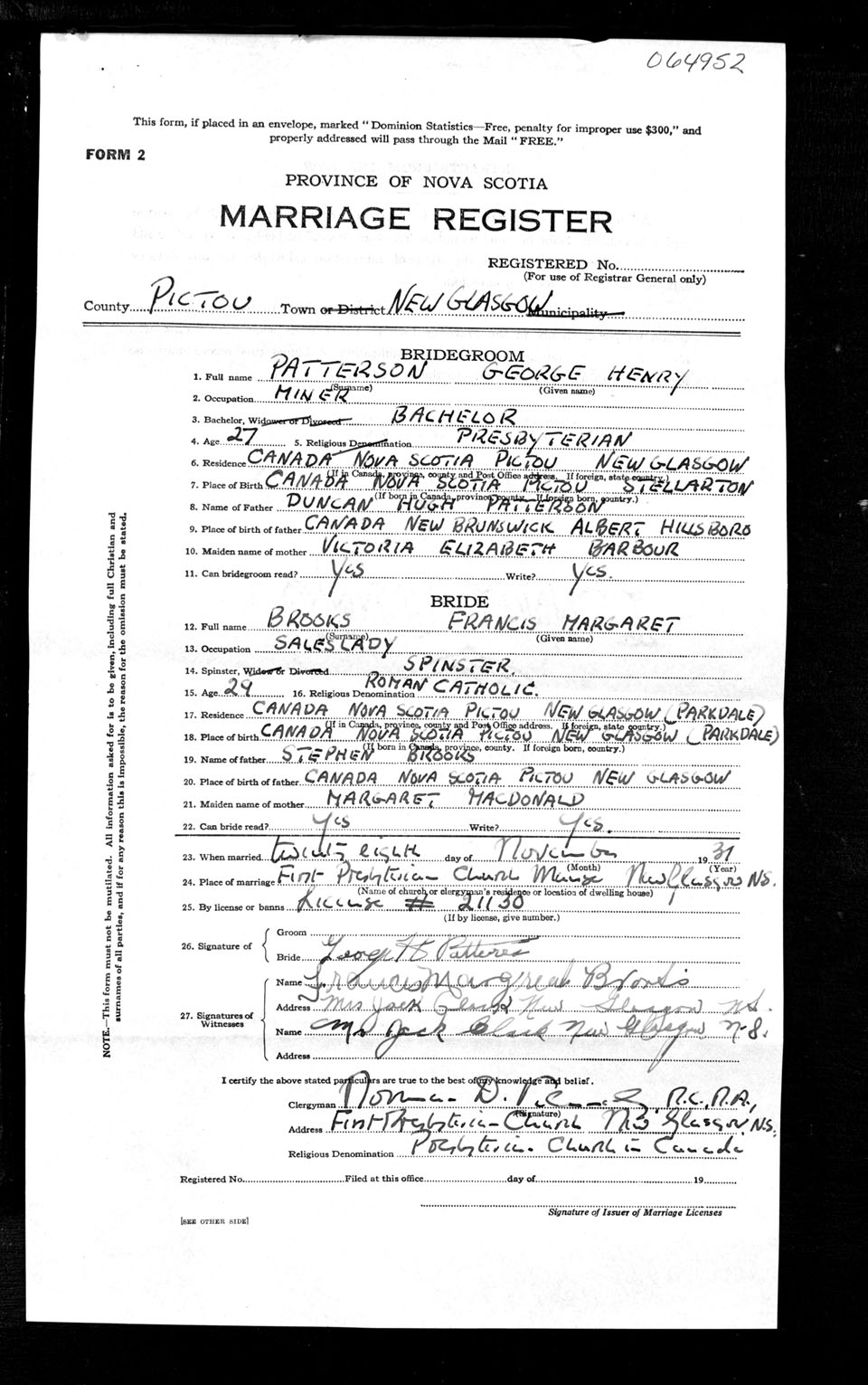 Registration: Year: 1931 number: 64952