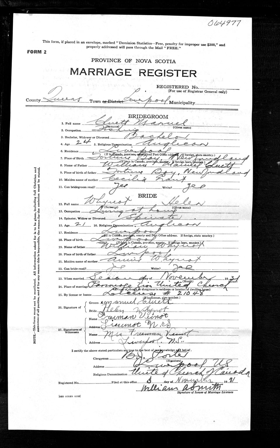 Registration: Year: 1931 number: 64977