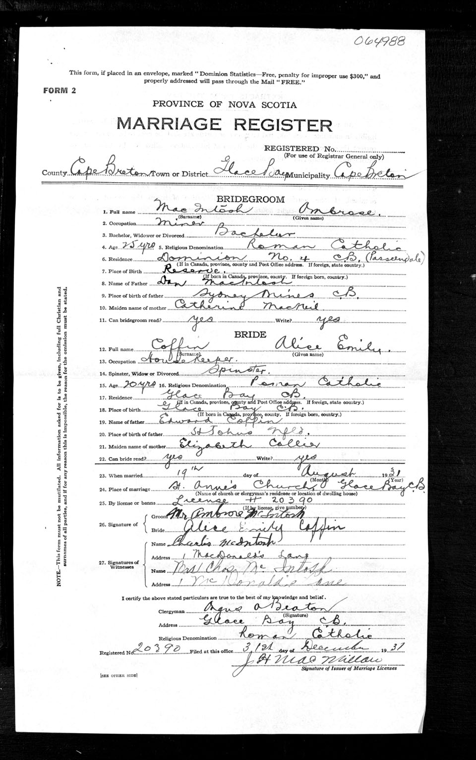 Registration: Year: 1931 number: 64988