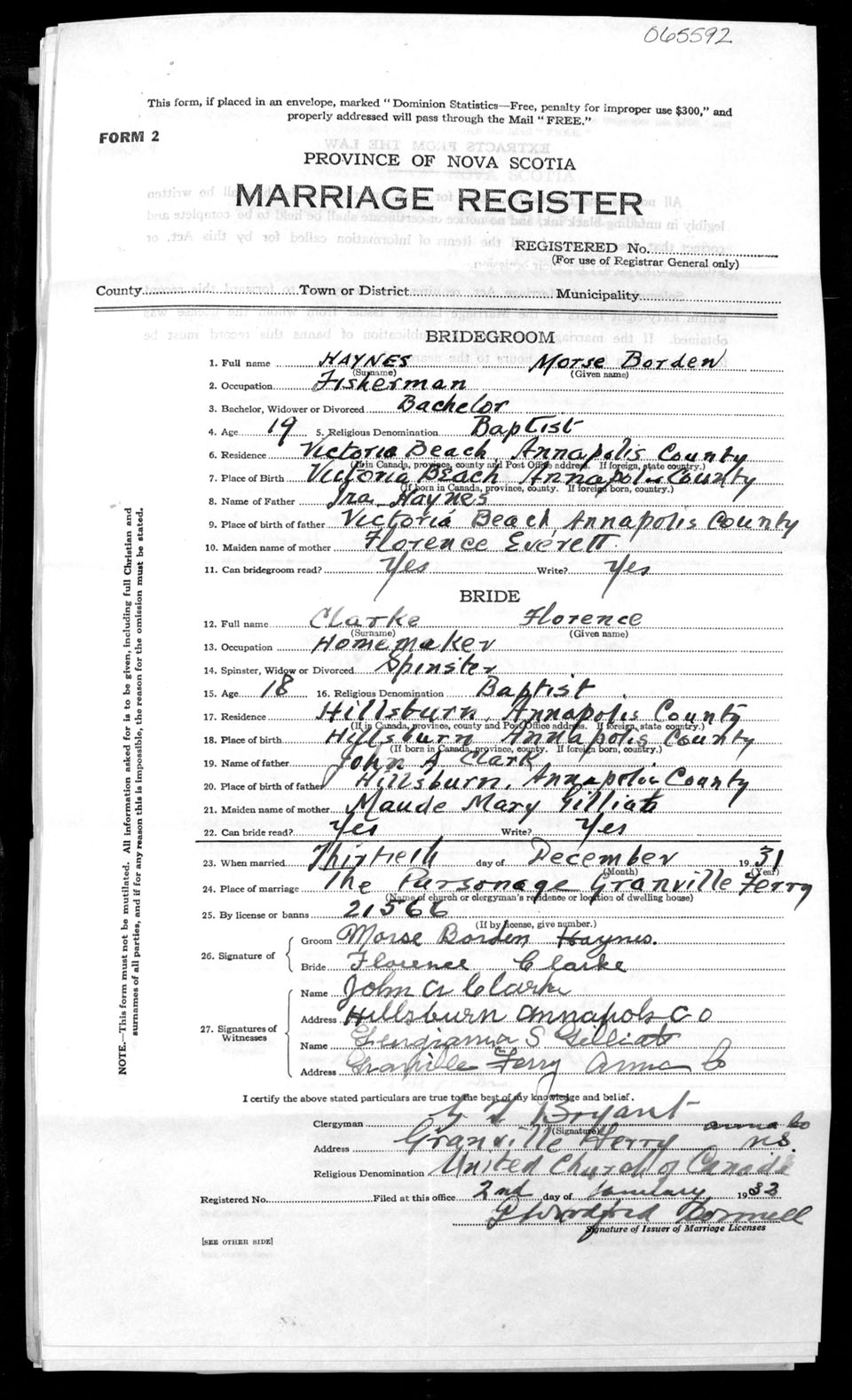 Registration: Year: 1931 number: 65592