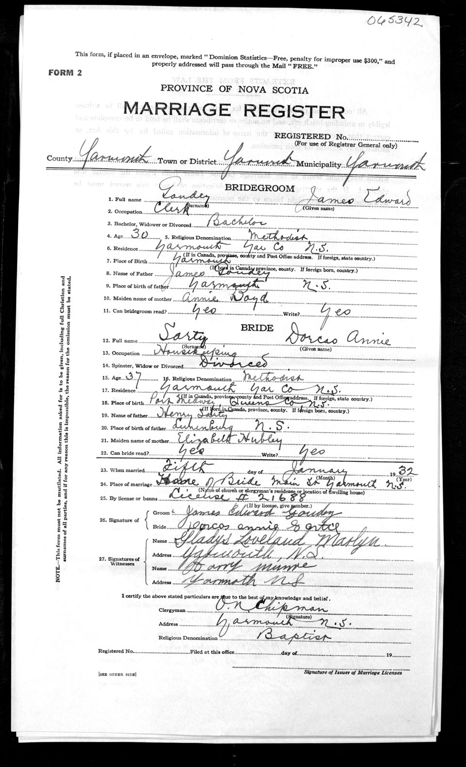 Registration: Year: 1932 number: 65342